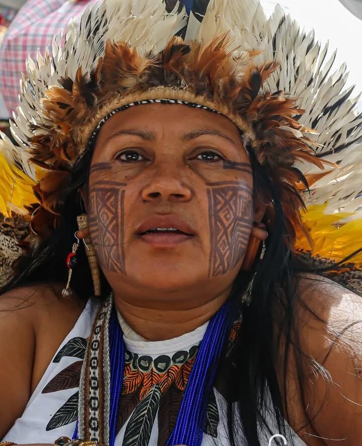 Nádia Akawã Tupinambá, filha, mãe, avó, liderança indígena, moro na aldeia Tukum, Território Indígena Tupinambá de Olivença, graduada em Linguagens e Artes pela Universidade Estadual da Bahia/Uneb. Arte Educadora Indígena e popular, formadora de educadores indígena da Bahia do programa Saberes Indígenas nas escolas e na formação continuada. Membro do Fórum Estadual de Educação escolar Indígena. escritora, Diretora audiovisual, produtora cultural, palestrante, Conferencista, Cerimonialista nas representações dos assuntos indígenas , membro e diretora de saúde indígena do MUPOÍBA. Mestra da Tradição Oral e membro da comissão Nacional de Mestre e mestra Griô da tradição oral. Reconhecida como mestra de saberes através do prêmio de preservação dos bens culturais populares e identitárias da Bahia Emilia Biancardi 2020. Mulher medicina, conselheira espiritual e conselheira do Movimento plurinacional Wayrakuna uma rede artístico filosófica de indígenas mulheres na América Latina, América do Norte e Europa. Conselheira Fiscal do Instituto wayrakunas. Orientadoras das plantas a serem utilizadas antes durante e após o parto, manipuladoras das ervas medicinais de cura no feitio das pomadas, tinturas, águas de cheiro e óleos essenciais. Condutora das cerimônias com medicinas da floresta Ayawaska, cerimônia do Tabaco Rezado e Cantado com Memórias das Avós, da Cerimônia do sopro sagrado ( rapé Tupinambá), e da cerimônia do templo sagrado (útero) das mulheres para a cura ancestral com a ginecologia natural curativa e preventiva às mulheres de todas as idades. Parteira e condutora da roda de mulheres para o cuidado dos florais da lua e do sagrado feminino. Cuidadora e guardiã das sementes nativas e dos saberes ancestrais e imateriais, massoterapeuta e terapeuta holística, Fundadora da articulação da teia dos povos do sul da Bahia e da Universidade dos Povos.