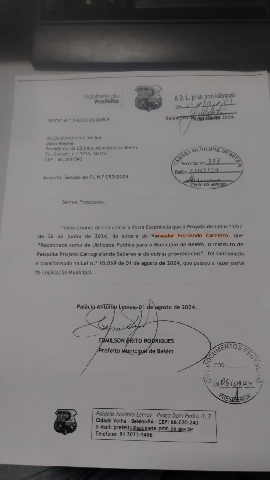 O reconhecimento decorre do Projeto de Lei nº 057/2024, de autoria do vereador Fernando Carneiro do PSOL, com apoio e impulso político do vereador Amaury – APDD/PT-PA, sendo sancionado pelo então Prefeito de Belém, Edmilson Rodrigues, passando a integrar a legislação municipal.